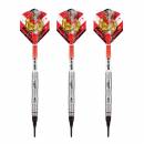 Shot Michael Smith Defiant steel darts have a tungsten content of 90%. The Defiant dart with a central center of gravity was developed in close collaboration with PDC world champion Michael Smith. The three-color barrell made of red and silver is coated with black titanium. The finely milled rings surround the front part of the barrel, followed by a matrix of cuts that ensure a clean grip. Shot's razor cuts in the middle draw the line between the front and back of the grip and provide a good reference point for finger placement. In the rear area, Michael Smith's characteristic St. Helens V is cut into the barrel.