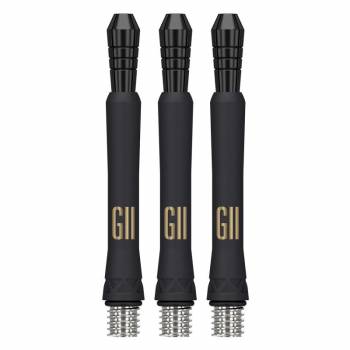 The Generation 9 Phil Taylor shaft is a black titanium shaft with a black aluminium top to provide fantastic flight grip and to easily replace flights. The top screws into the Shaft and tightens its grip on the flight as you tighten the top. The shaft features radial grooves at the base for added grip and is coated in Black Titanium Nitride.